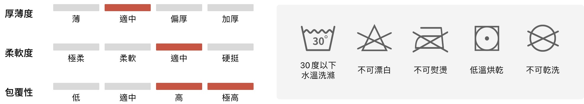 布料外層採用輕磨毛工法,呈現柔焦霧面感,視覺上多了一分柔和;
