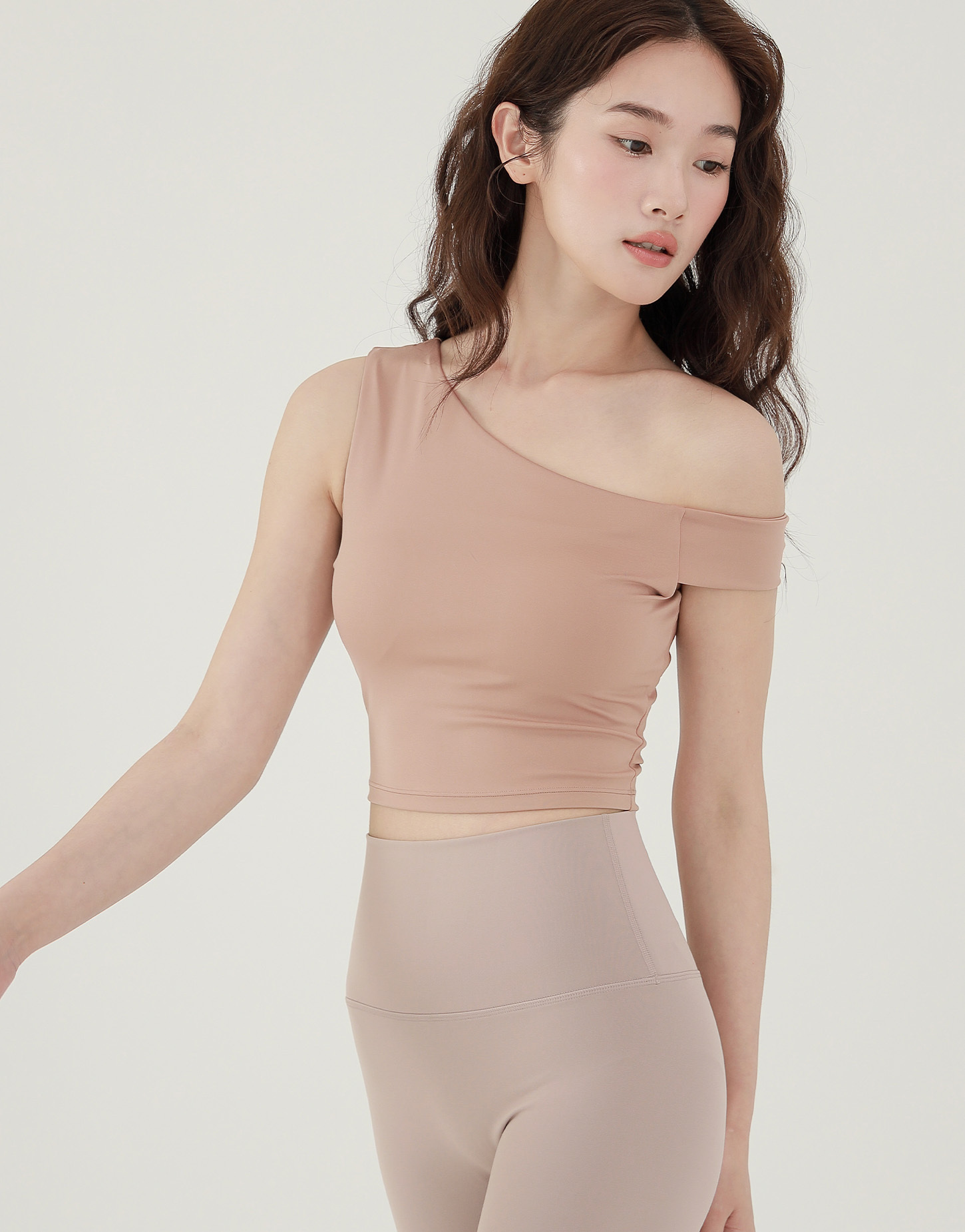 Aurora 優雅斜肩運動內衣 - 霧粉