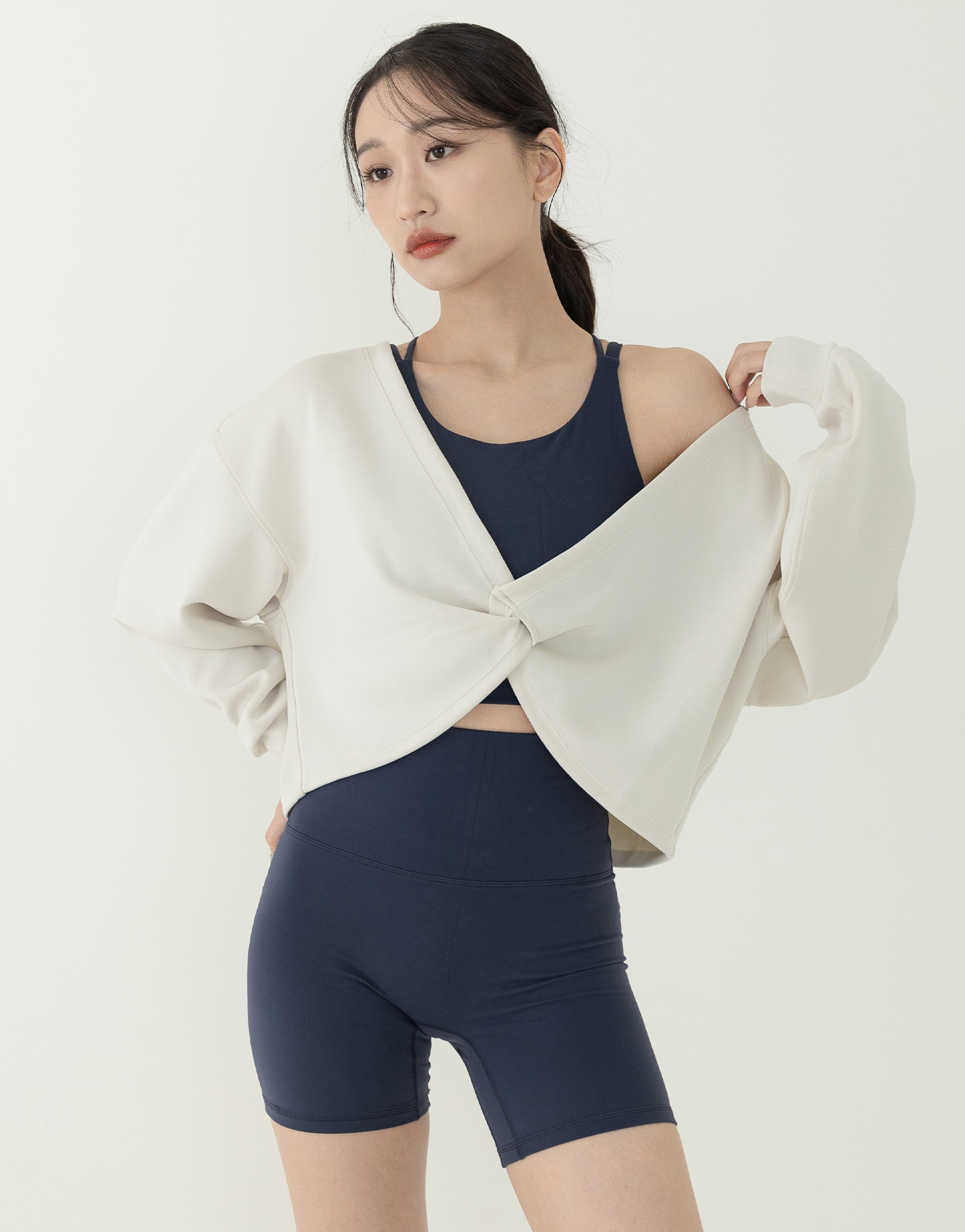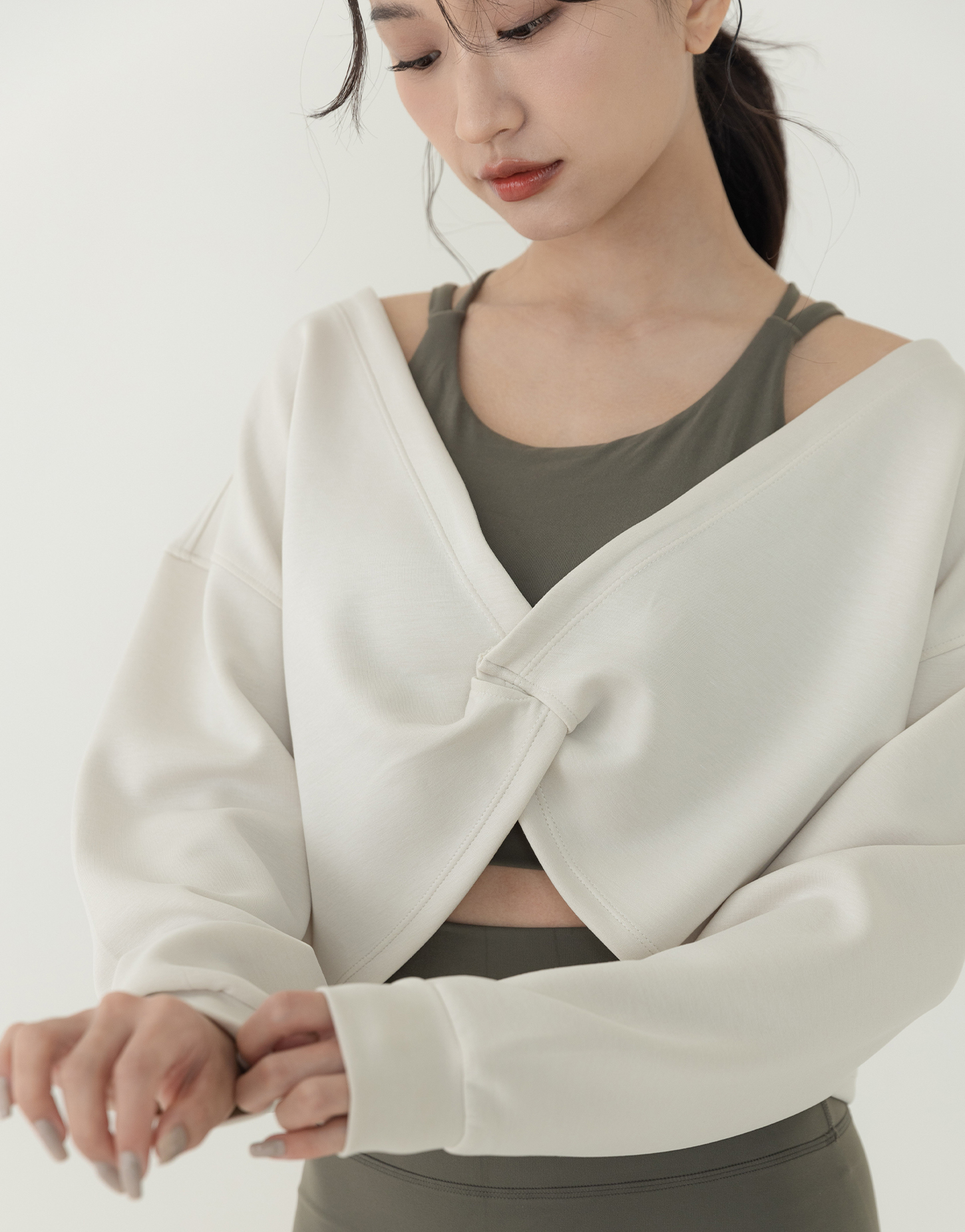 若是想要多一點小辣感,可以將有扭結的這面穿在前側,