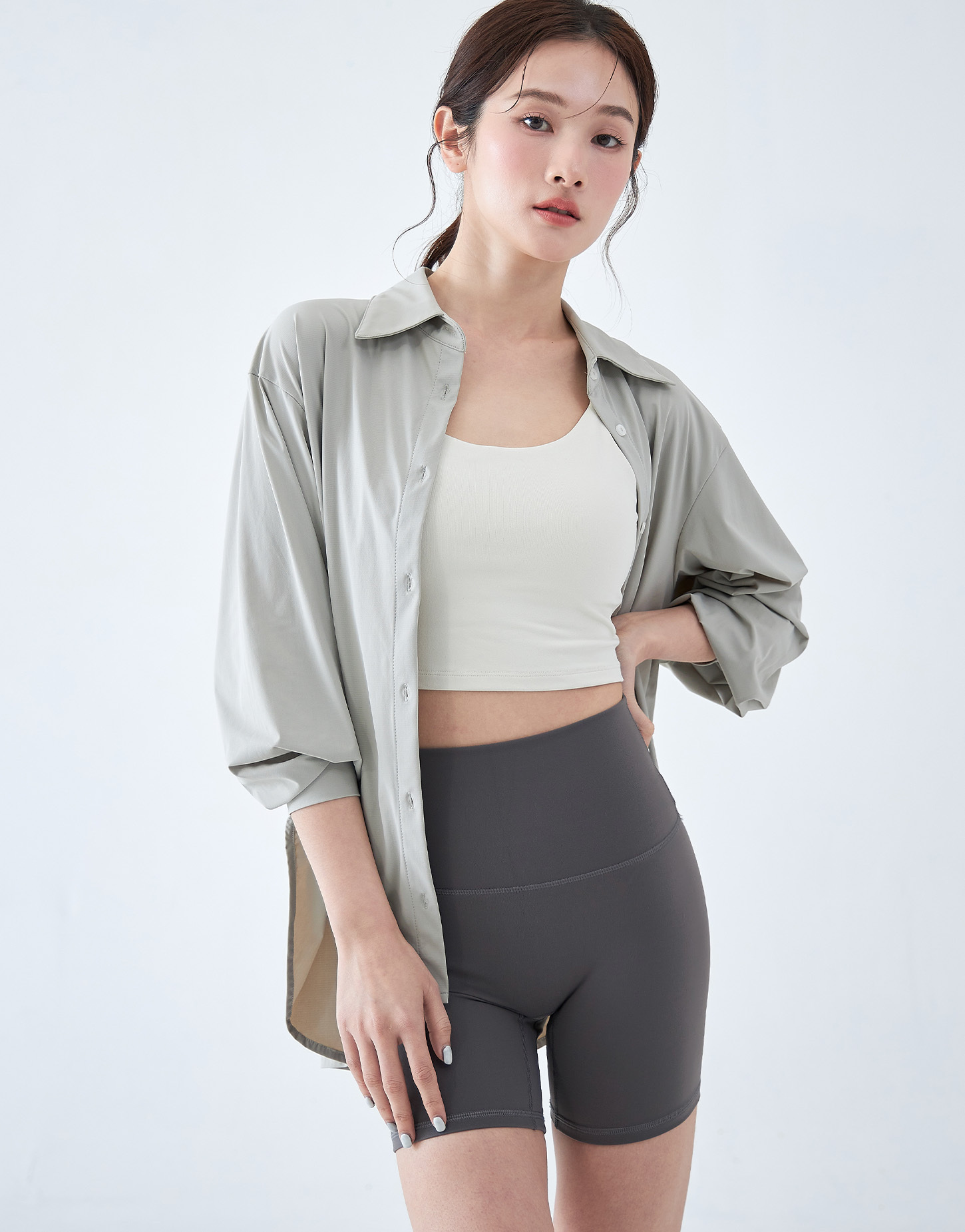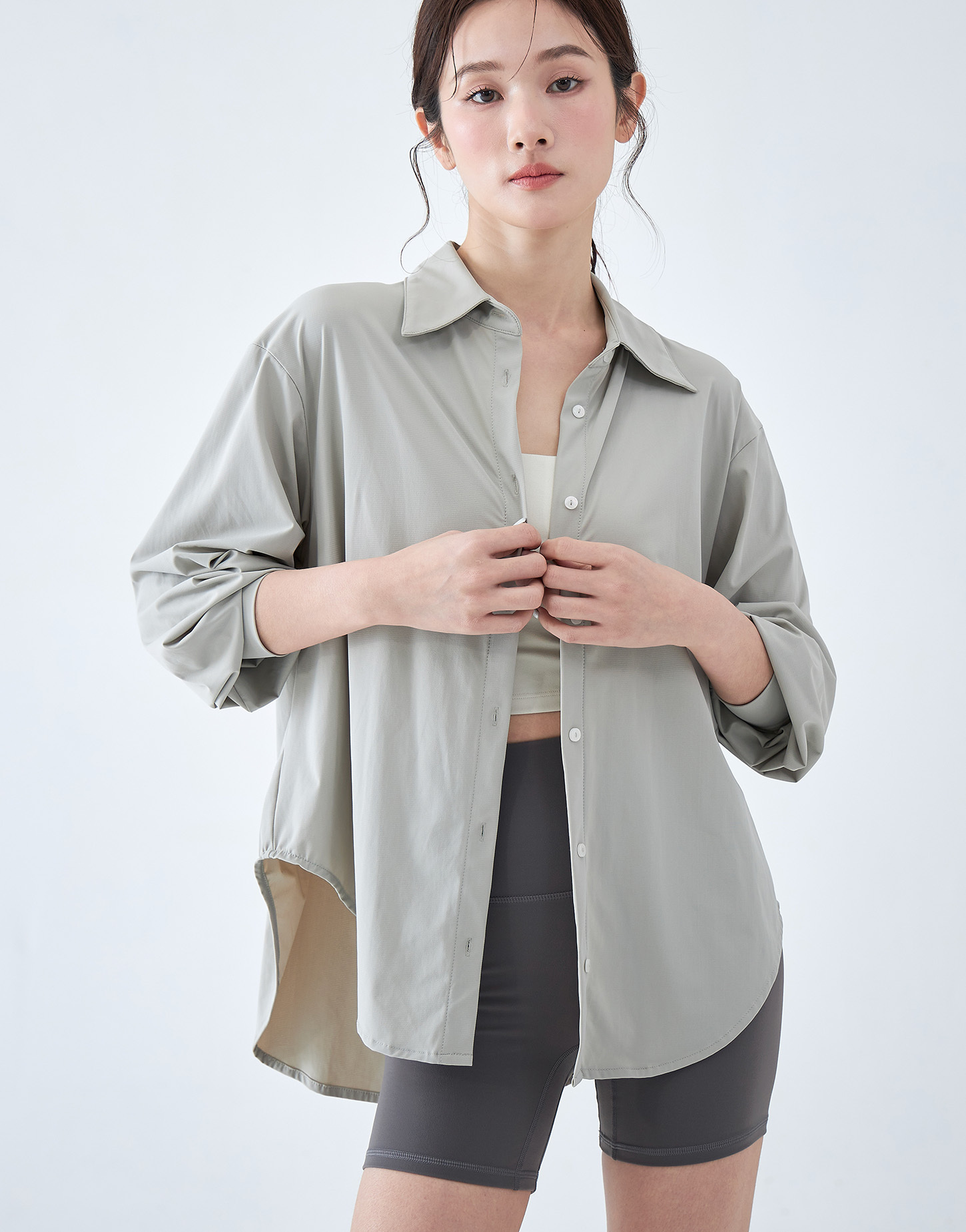 一般襯衫的設計是為了俐落,搭運動服飾多少還是有點稍嫌正式,
