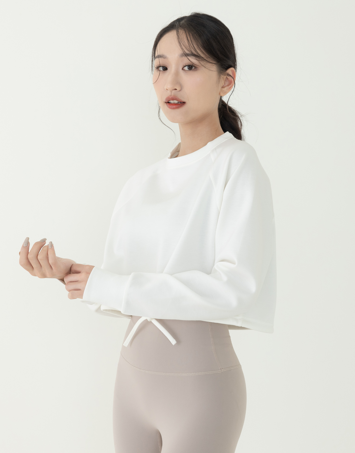 不包脖子的小圓領讓穿著舒適度提高,同時修飾脖子曲線,帶來柔和的視覺效果