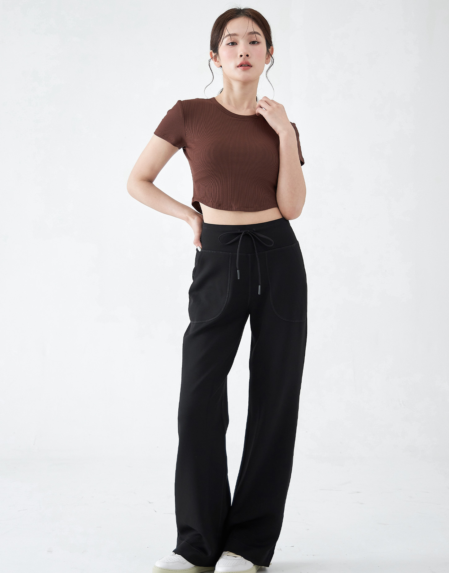 搭配單品:-3KG 卡戴珊直筒修身寬褲 - 修身黑