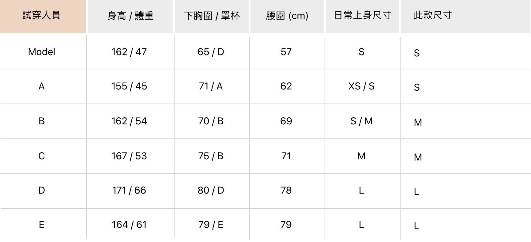 1. 版型正常,請依照尺寸表選擇
