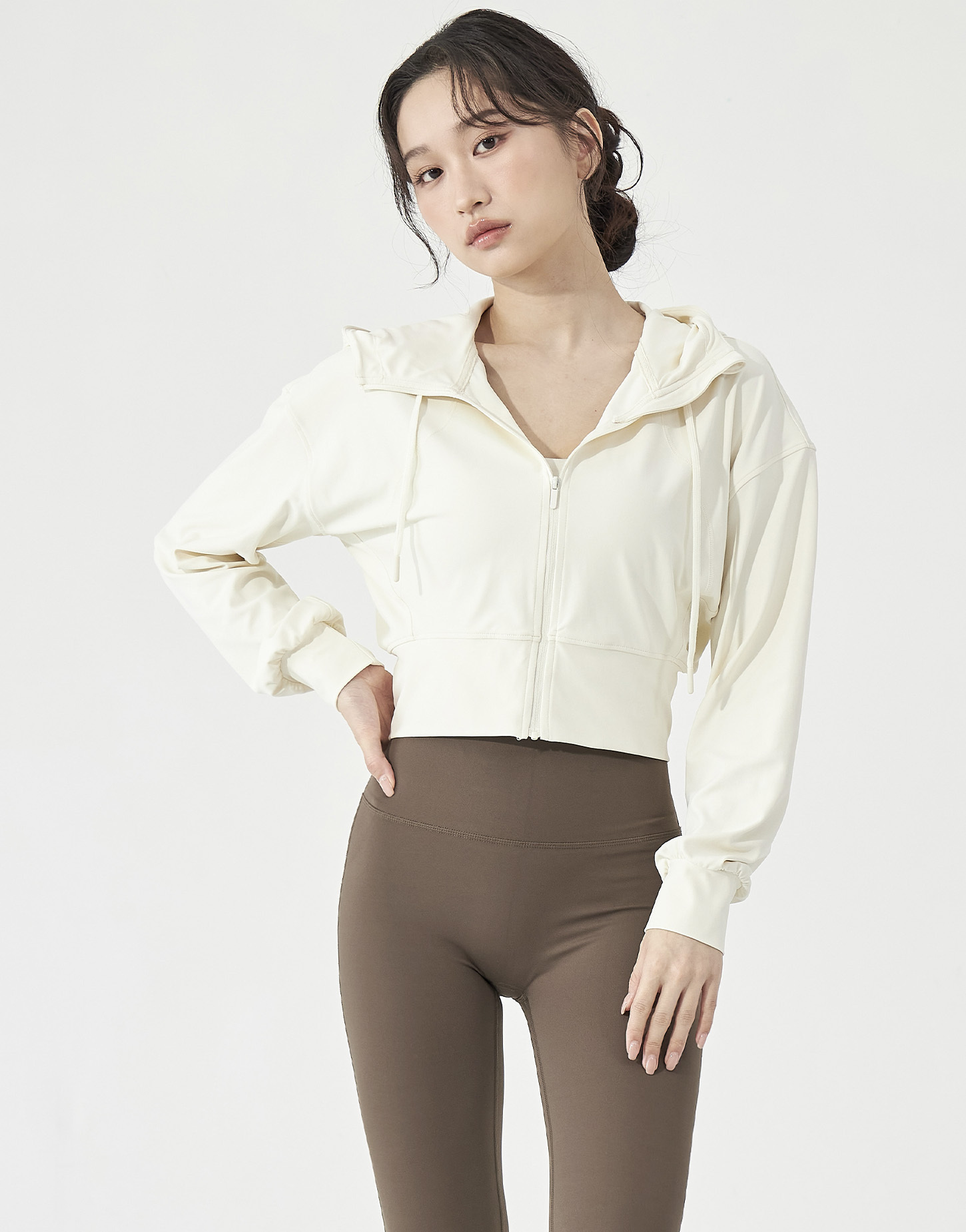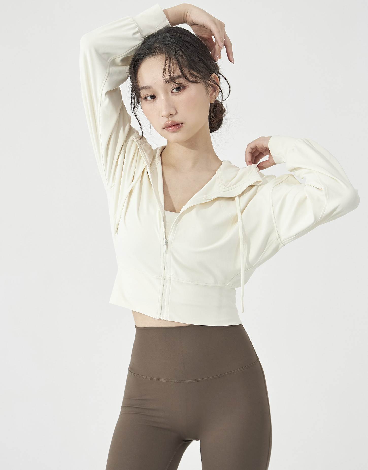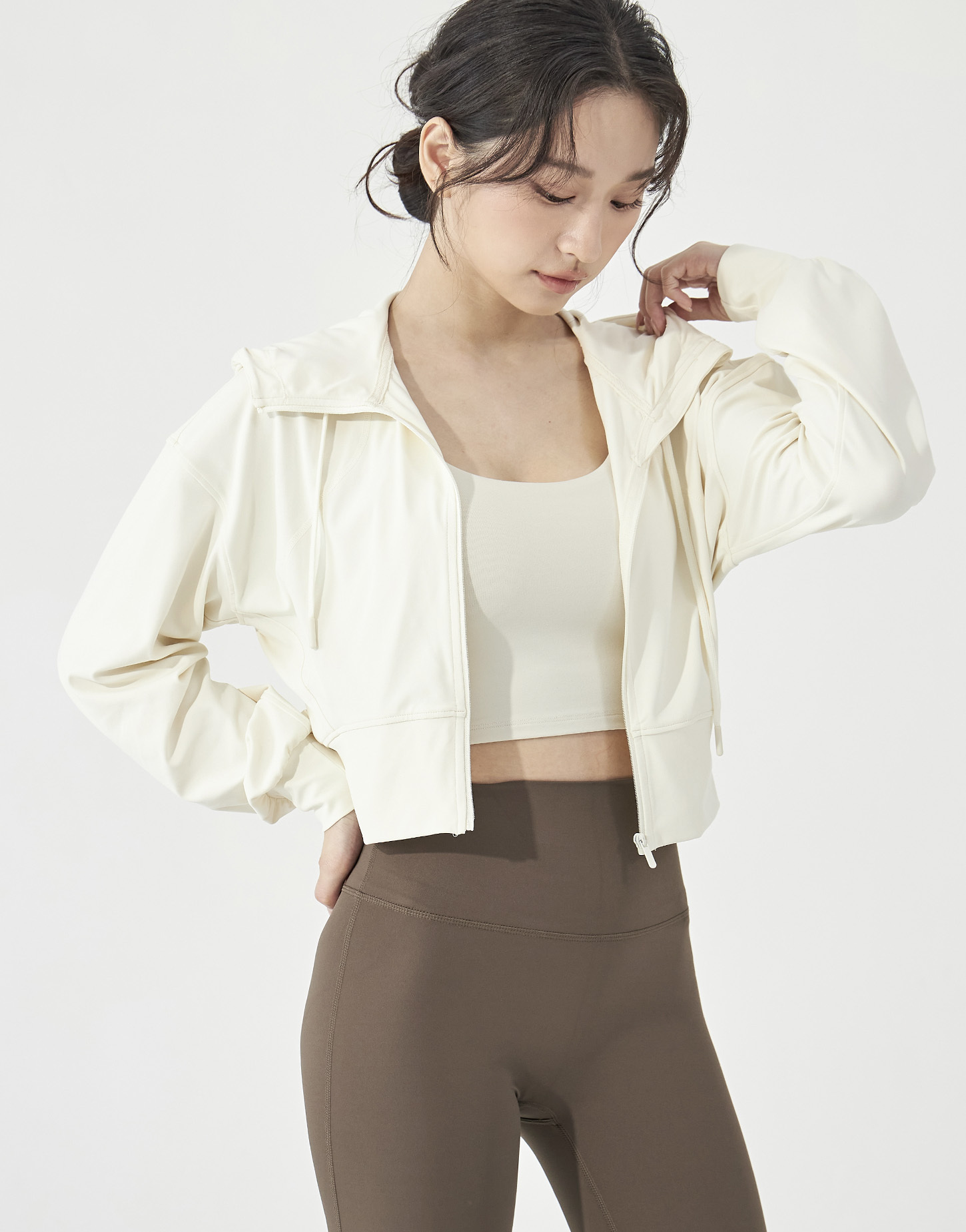 2️⃣ 拉鍊拉一半,皮拉提斯系的優雅精緻感就跳了出來