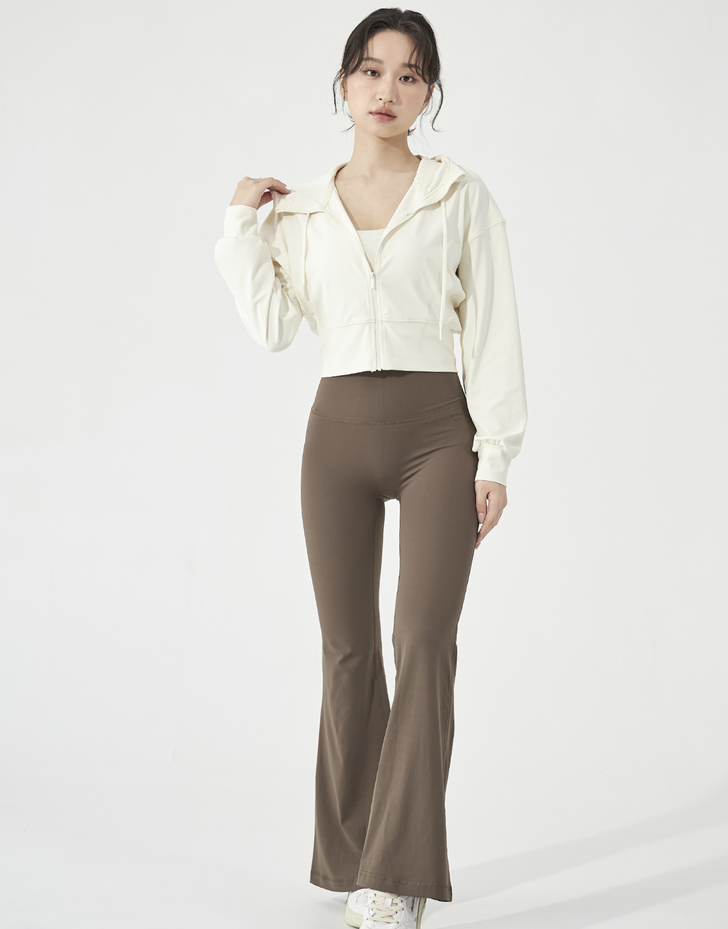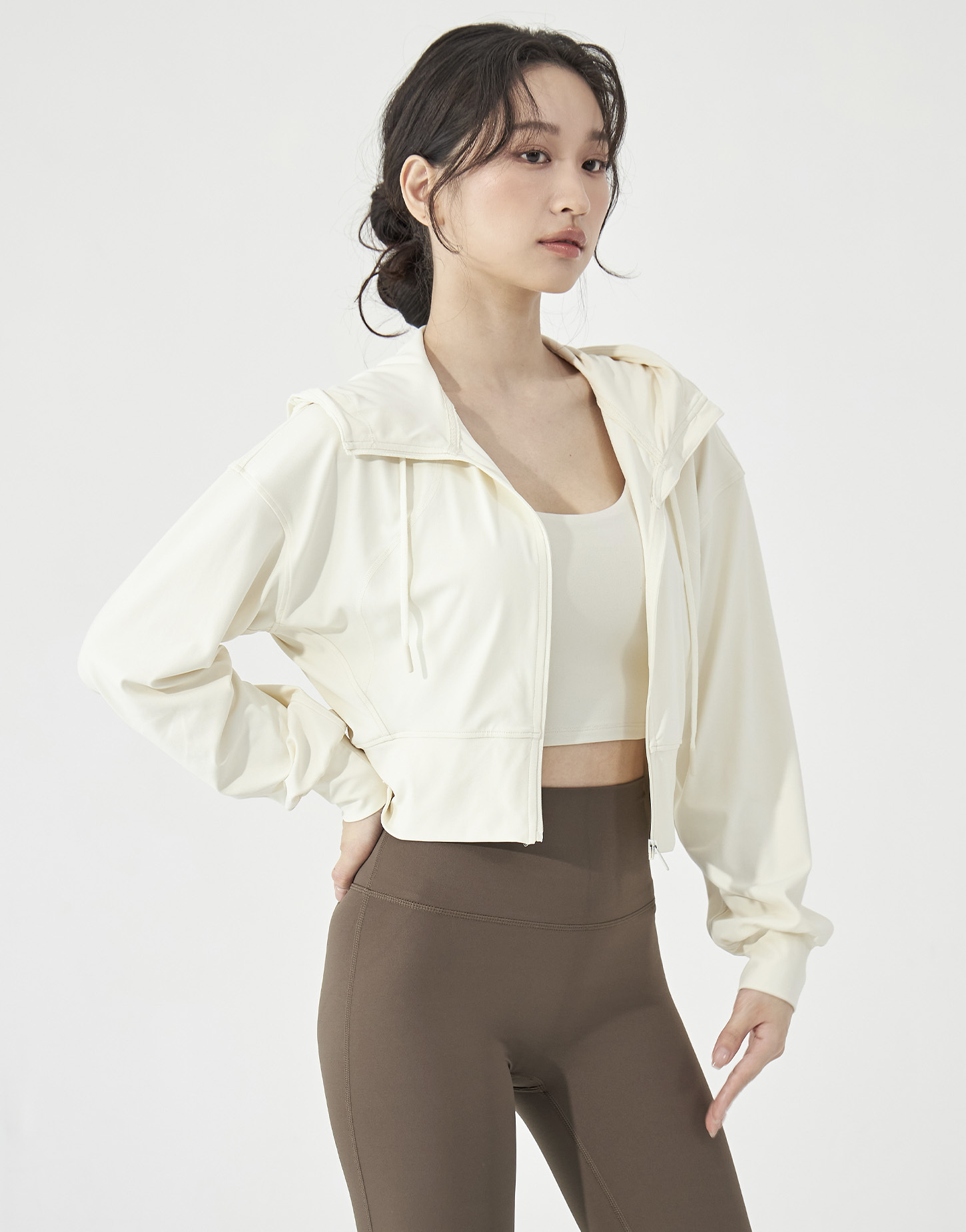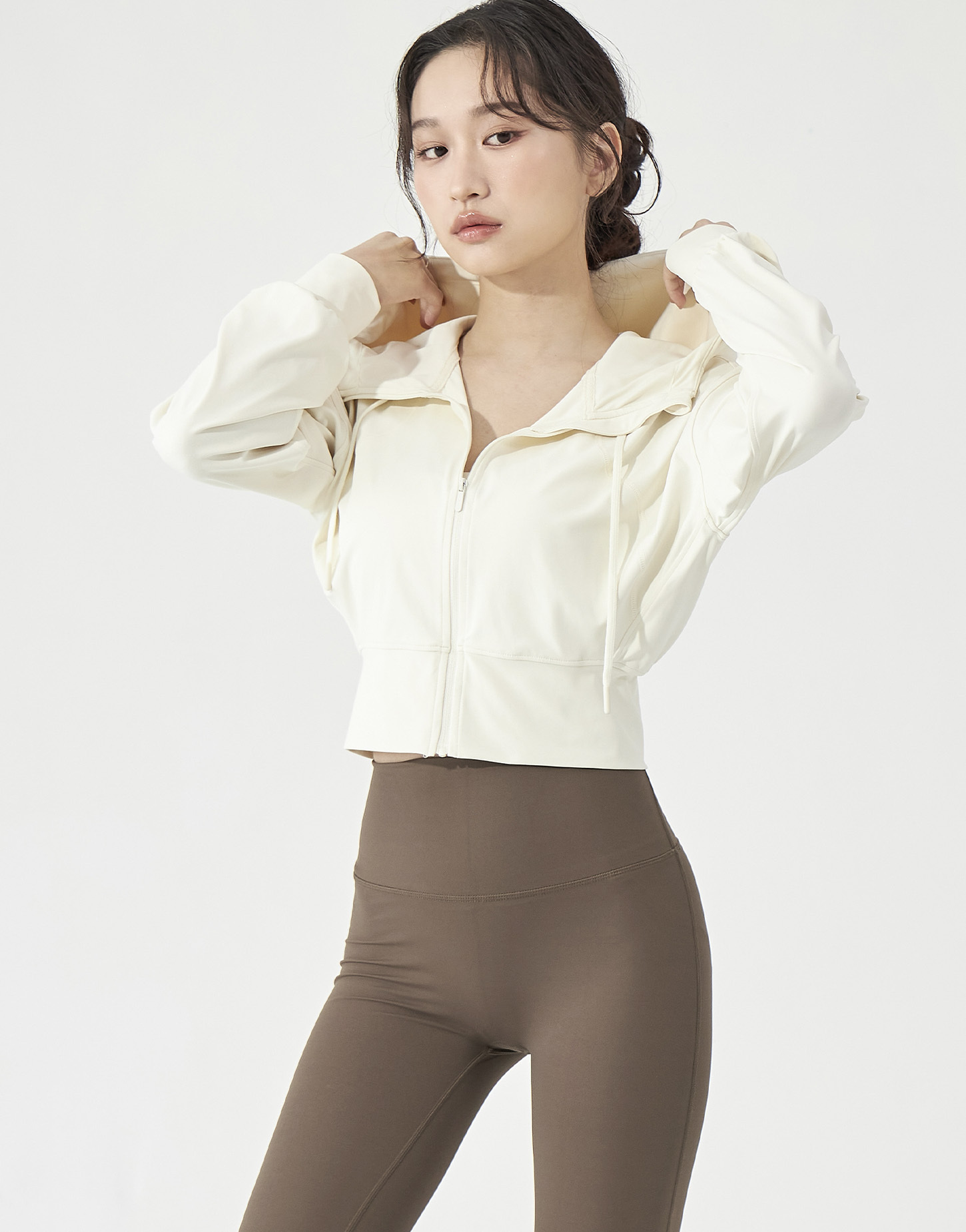 2️⃣ 拉鍊拉一半,皮拉提斯系的優雅精緻感就跳了出來