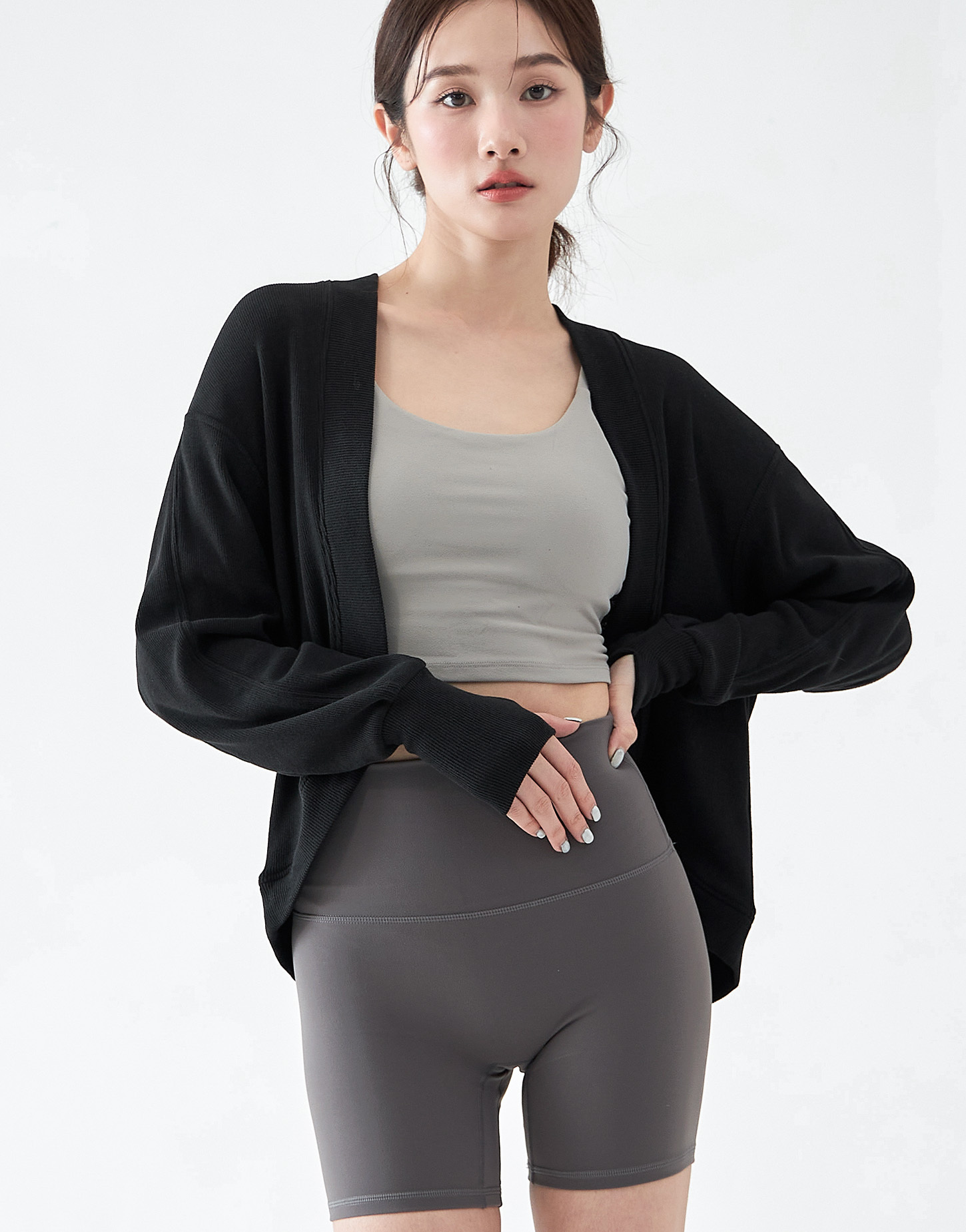 Moffy 長袖開襟羅紋罩衫 - 黑色