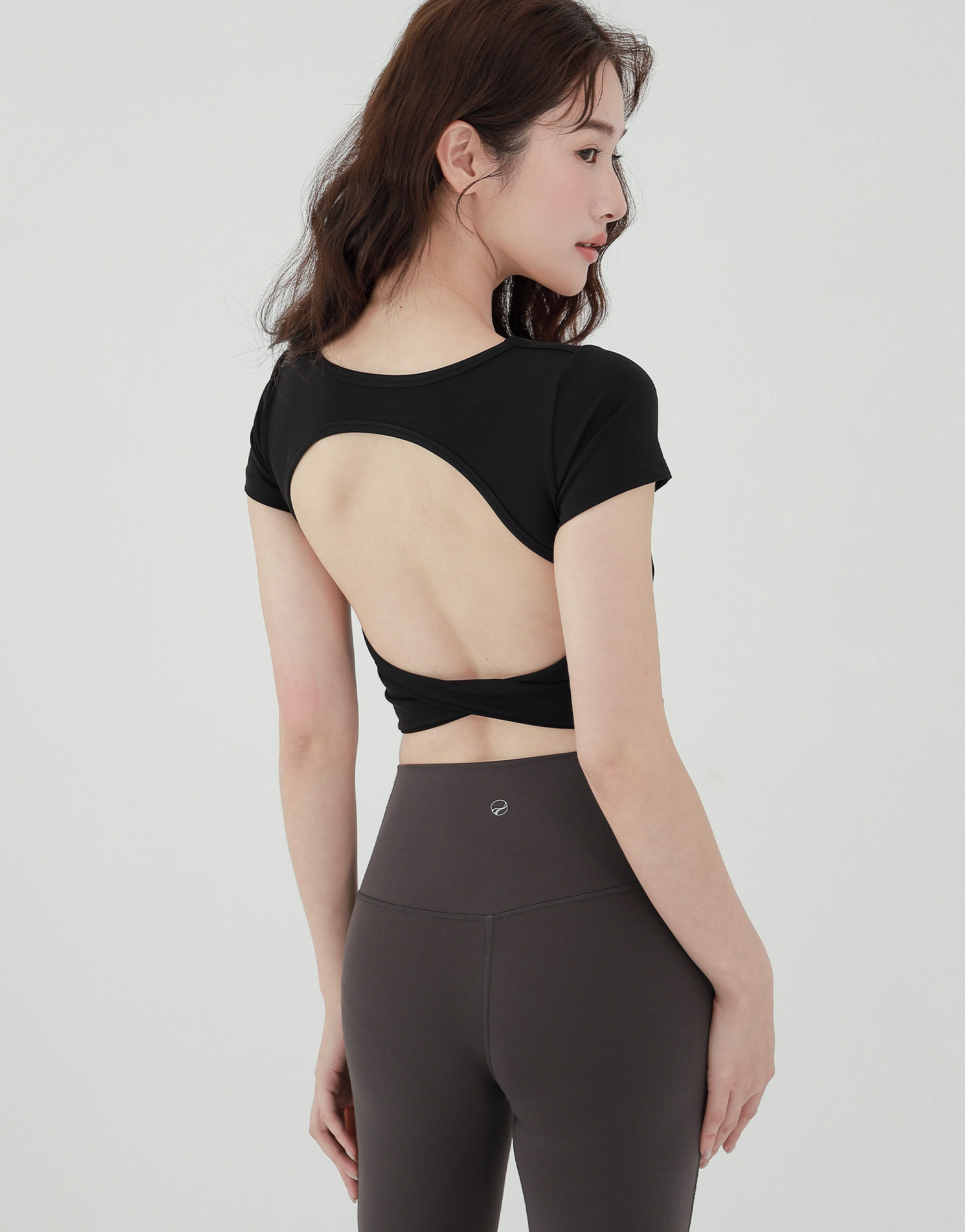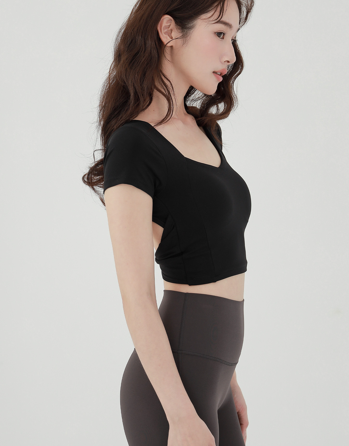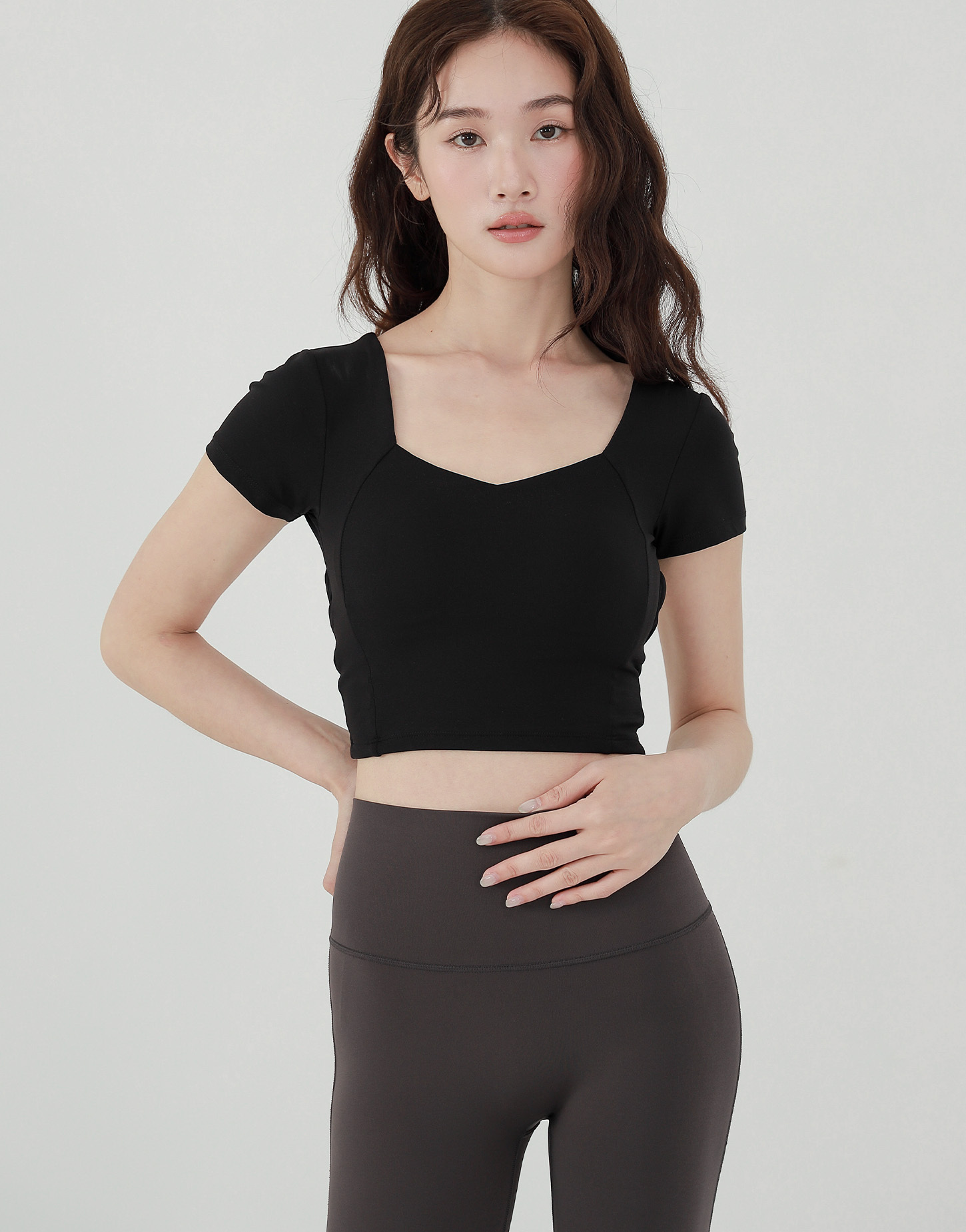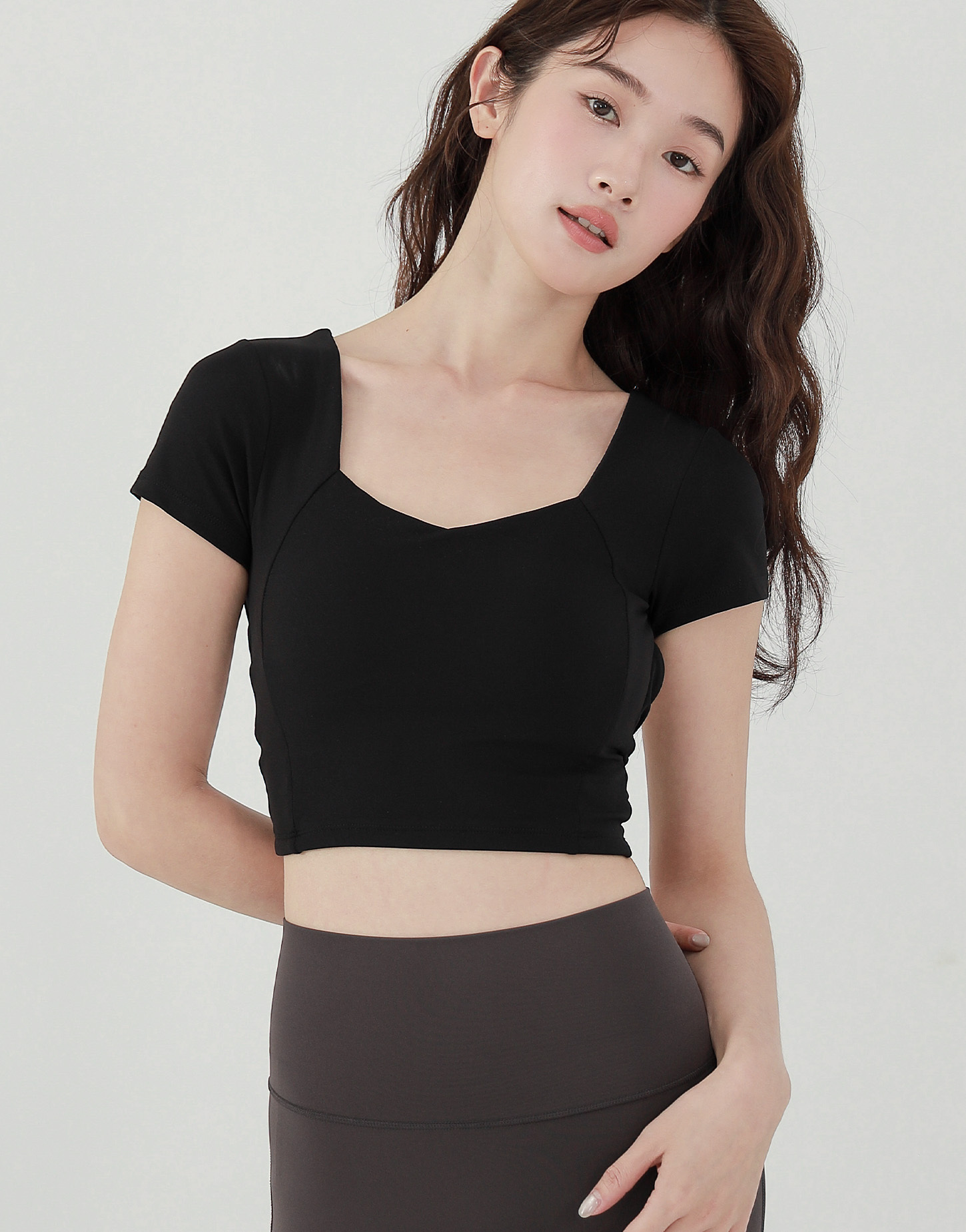 My Heart 桃心領短袖運動內衣 - 修身黑