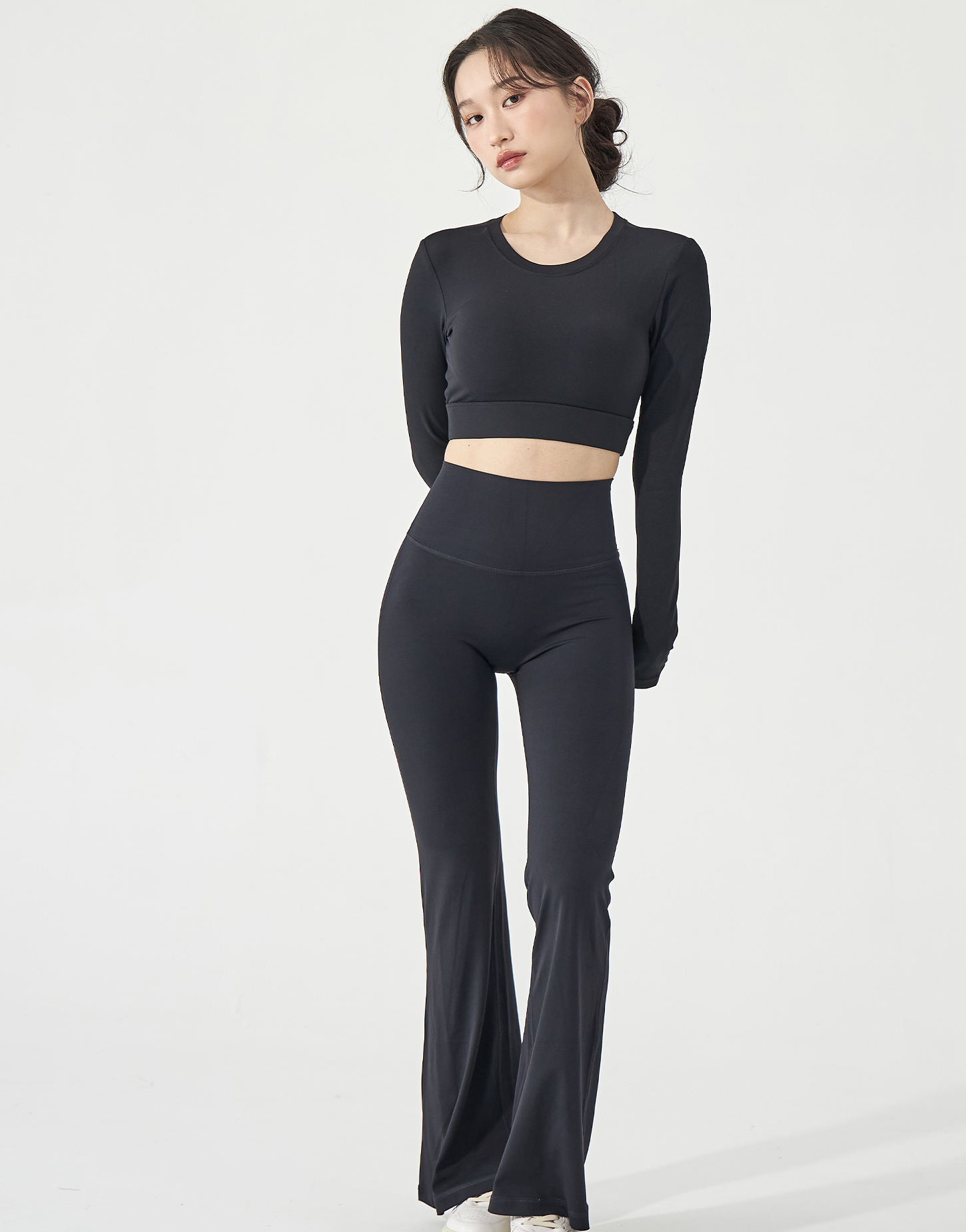 搭配單品:Flow 輕盈長腿高腰喇叭褲 - 修身黑