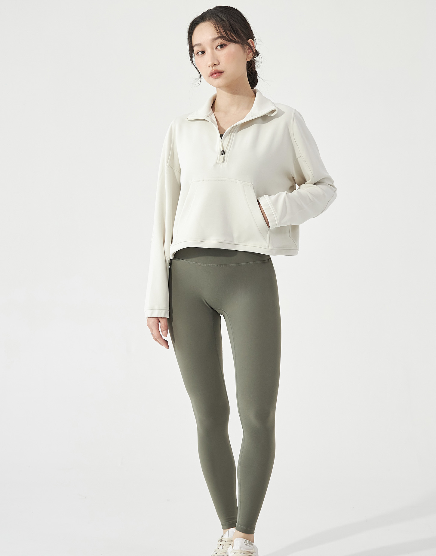 下擺加入可調式抽繩設計,放下時長度過褲頭,線條自然修身;