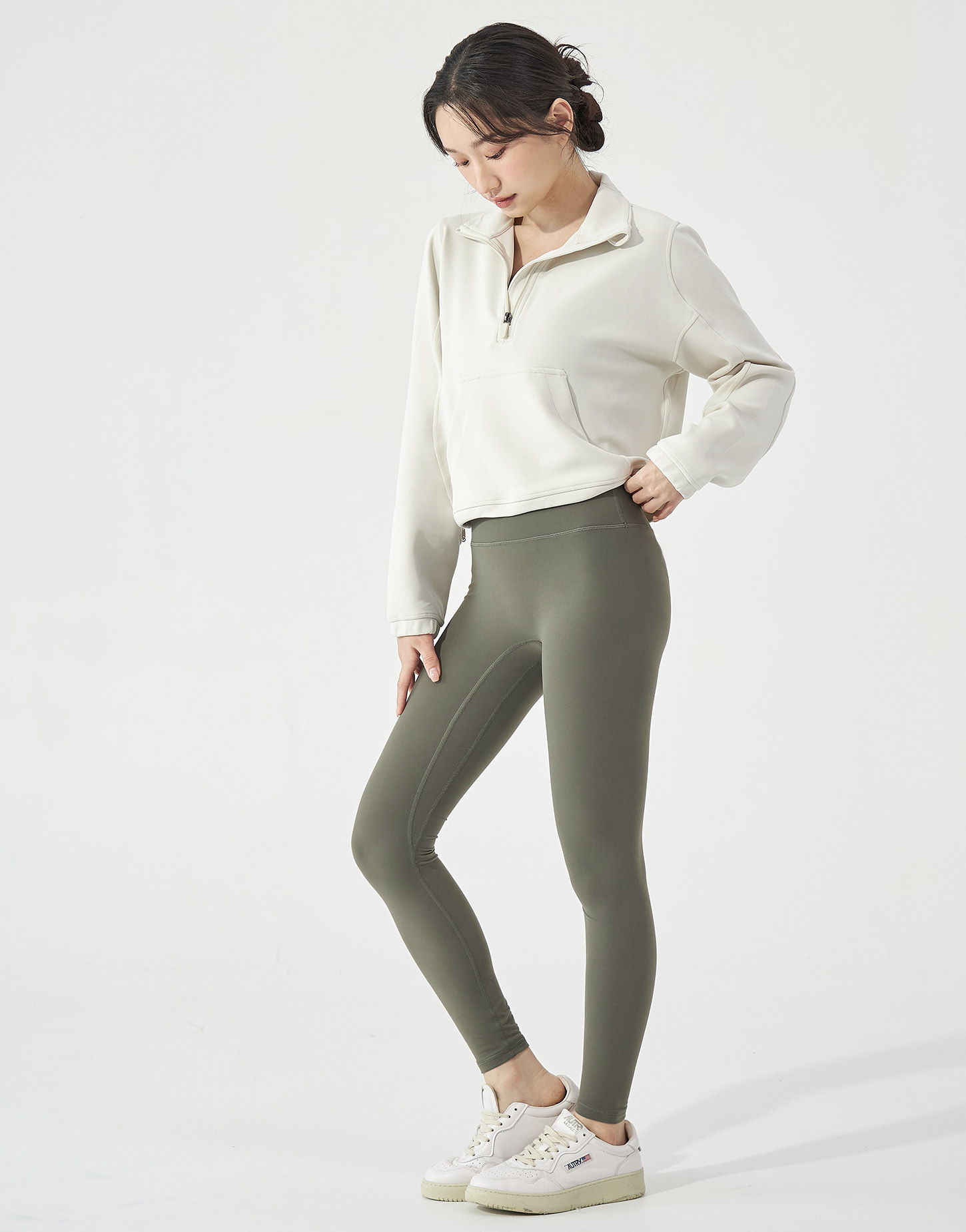 拉緊後能提高至腰部位置,腰線瞬間上提,拉長腿部比例,